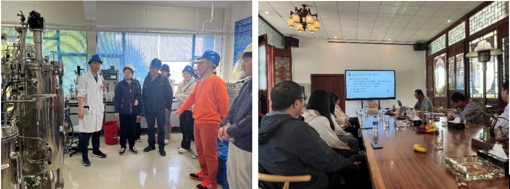 云叶股份全资子公司云南云之叶生物科技有限公司总经理赵荣斌、生产技术部工艺主管何庚、安全环保部主管沈加祥、控股公司云南滇兴农农资有限公司总经理张勇、子公司云南省微生物发酵工程研究中心有限公司技术研发部部长赵崇钧及综合事务中心副经理裴玉娜与民大医药学院“访企拓岗”小分队成员进行了座谈,并带领大家参观了公司的科研中心、厂区、企业文化走廊等。通过参观,民大医药学院师生全方位的了解到我司自1994年成立至今,对云南农业现代农业的高速发展做出的贡献,并通过实地参观看到了我司在规范化管理、技术革新和服务优化等方面做出的努力,同学们对能够在我司就业展现了浓厚的兴趣。