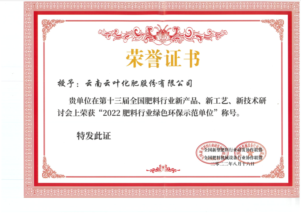 2022肥料行业绿色环保示范单位 2022-08-16 暂无评论 admin 资质荣誉 分享到: 上一篇: 云南省省级专精特新“小巨人”企业 下一篇: 2020-2021全国“安康杯”竞赛优秀班组 相关文章 中国中微量元素及肥料产学研创新联盟镁肥专委会 2024全国绿色肥料影响力品牌示范单位——第十五届全国肥料“三新”研讨会牌匾 仓储中心QC小组 “无机一班”为二0二四年云南省化工行业质量信得过班组 “电工组”为二〇二四年云南省化工行业质量信得过班组 云叶被评定为“2023云南高新技术企业100强”第45名 云叶被评定为“2023云南民营企业100强”第63名 云叶被评定为“2023云南制造业企业100强” 云南省“守合同重信用”企业 2022年度工会重点工作目标责任评定-特优单位